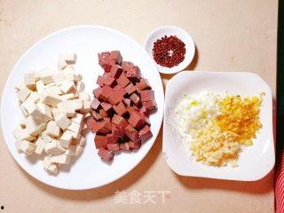 4. 炒鸭血豆腐:将鸭血豆腐切块,与青椒、洋葱等蔬菜一起炒制,加入适量的盐、生抽、鸡精等调料,翻炒均匀。